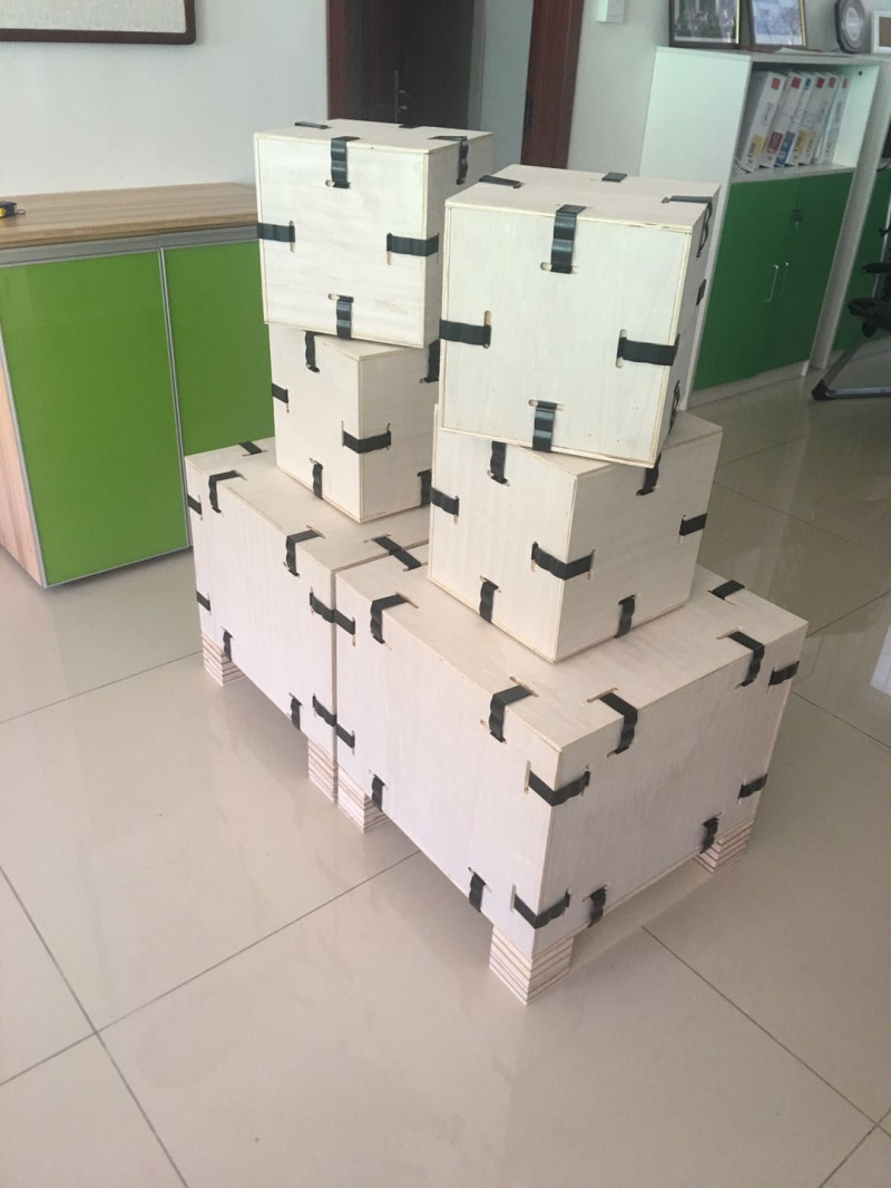 卡扣式木包裝箱全部采用高強度OSB板,箱體由高強度的金屬制件連接而成,其原理是箱體整體受力,無論是組裝還是運輸,都不會出現松動現象,同時避免漏釘、露釘、少釘、工藝粗糙、灰塵、雨淋、結構處理不當、運輸途中箱體碰撞造成的散架等問題;保障了產品的安全性,保證了客戶收貨時的完整性,同時由于是無釘化作業,確保了現場包裝人員的安全。同材質條件下,卡扣箱性能超過傳統木箱。